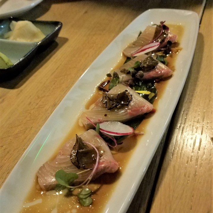 We ordered several dishes that night to try, starting off with the Amberjack Tiradito (see first photo above). This dish was amazingly yummy, I never had raw fish with truffle oil and boy does it bring this dish to the next level. It’s a very light appetizer with a delicate soy sauce vinaigrette that compliments the meaty texture of the Amberjack very well.