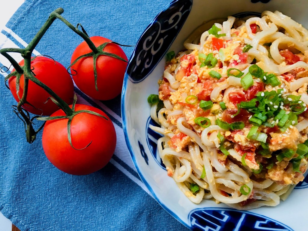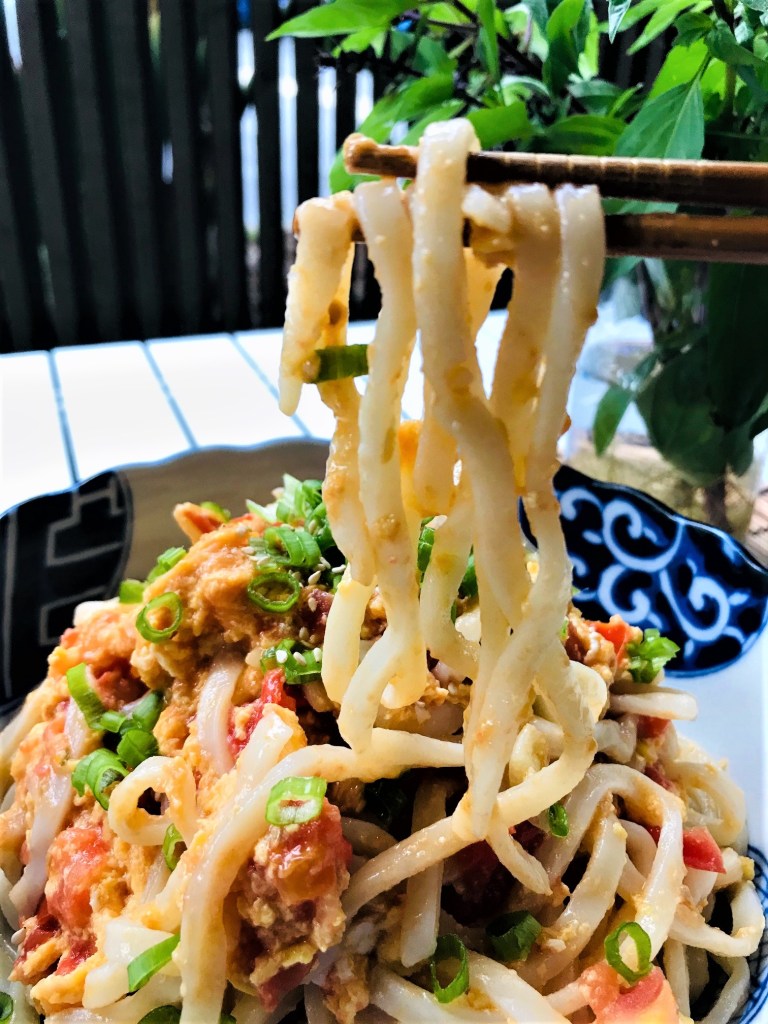 Here is a tasty quick and easy vegetarian noodle recipe that’s very straightforward to make no fuss no muss! The secret is in the delicious garlic tomato egg sauce made with your basic pantry ingredients. The sweet and sourness of the ripe tomatoes, creamy eggs, and addictive garlicky aroma is a true flavor bomb hit! Paired with fresh chewy wheat noodles this dish is the definition of comfort food. Like me, you’ll be making again and again at home when you’re craving for a warm bowl of goodness.