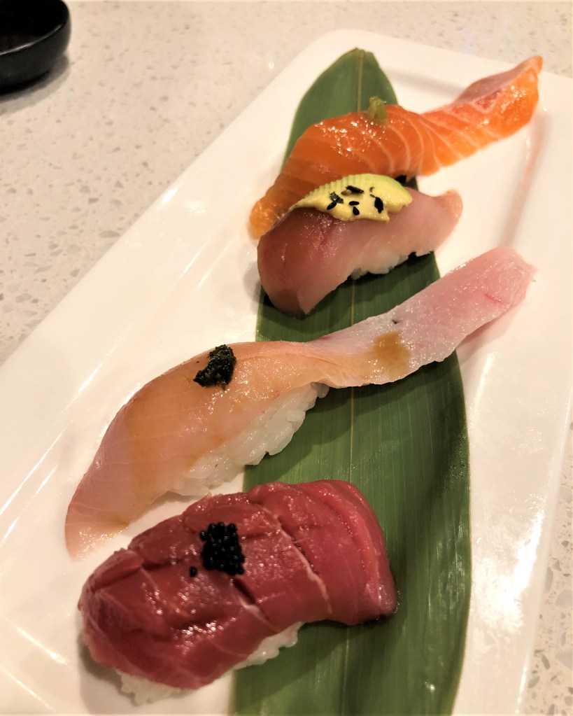Now comes my FAVORITE and part of the meal….the Salmon Oshi! I mean look at them! Those glistening pieces of sushi like pieces ever so lightly charred with a blow torch. To be honest, my husband and I had no clue what an oshi was but after some googling it’s like a variation of a nigiri sushi but the fish and rice is pressed in a box and cut into individual pieces. I have never seen this in any other Japanese restaurant so it was truly a treat to try it out.