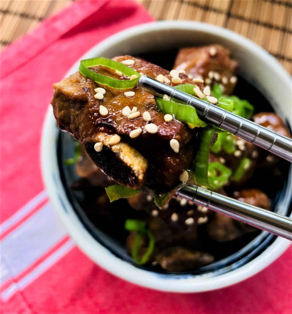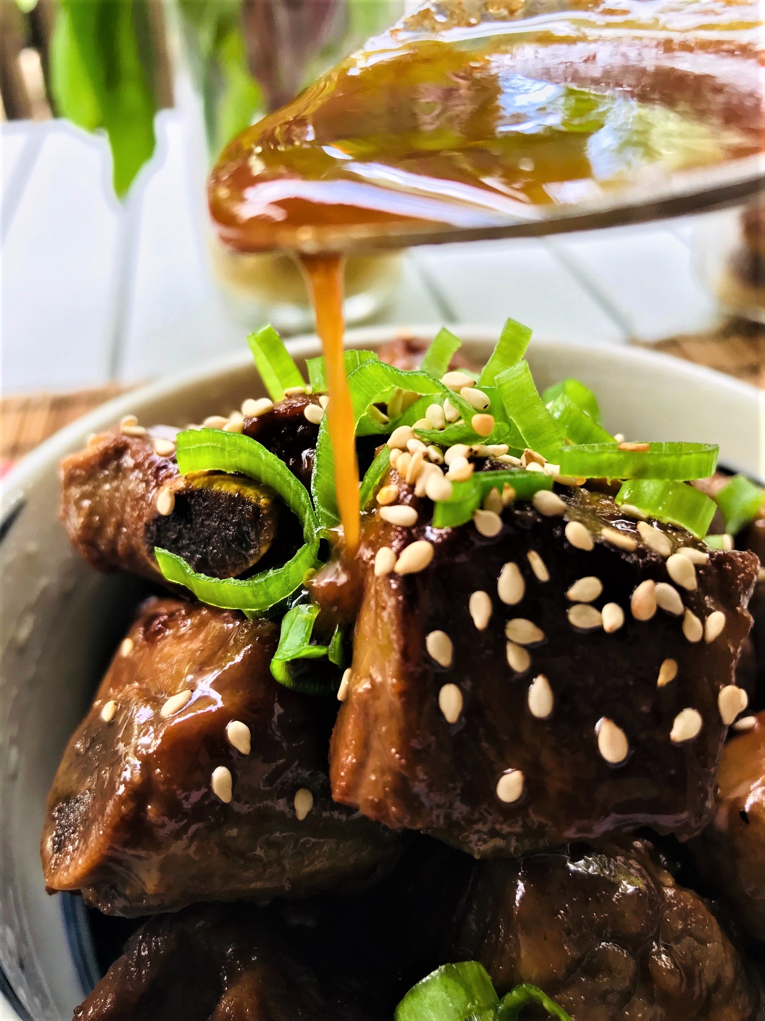 The first step is to heat the oil and gently melt the rock sugar into the oil by stirring gently over medium high heat. Once it’s melted and starts to turn into a nice amber color toss in your ribs and constantly stir to coat. Continue to cook until the ribs are evenly browned. This process may take a few minutes so be patient and make sure not to burn the sugar.