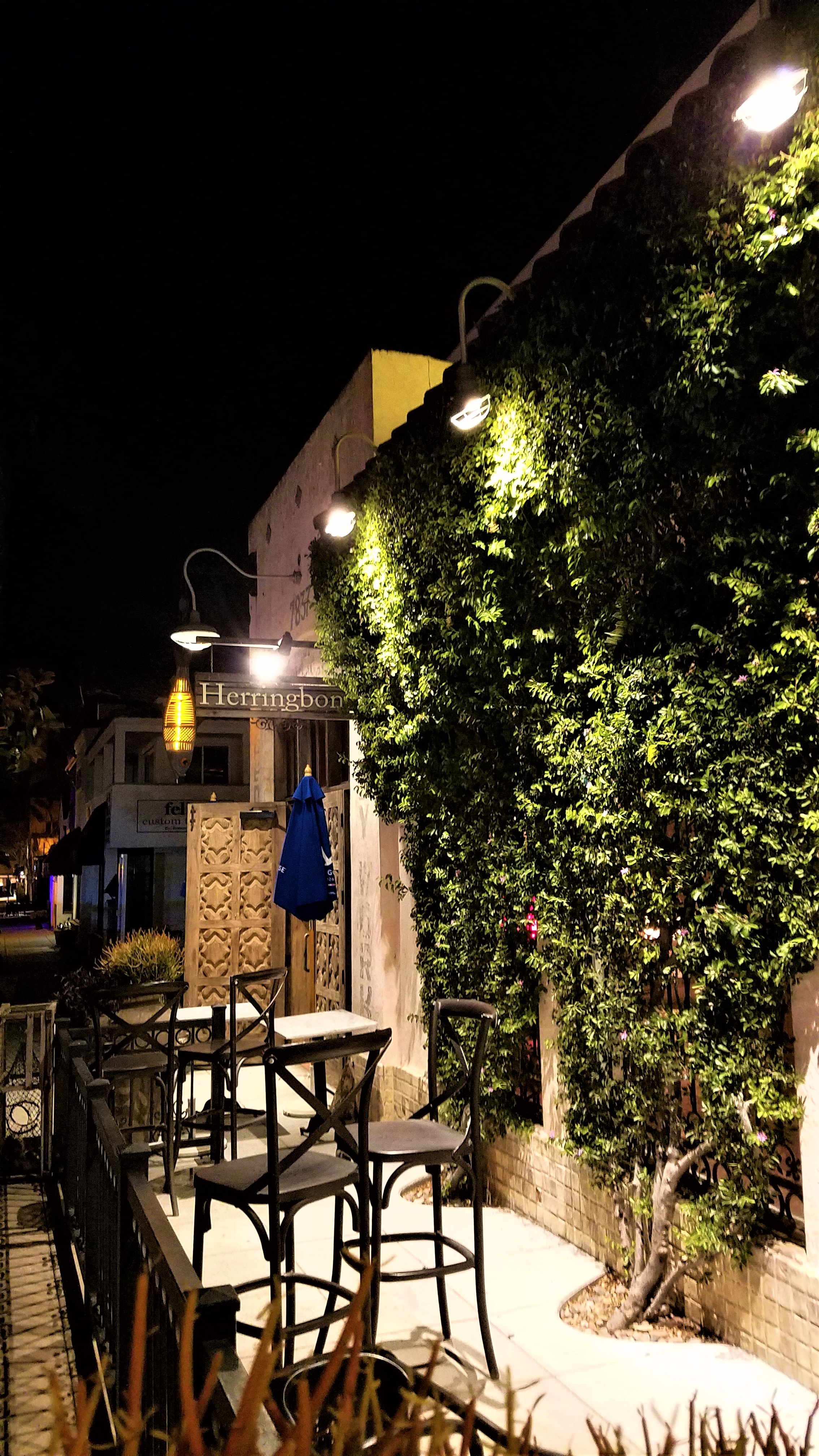 Herringbone is a hidden gem in downtown La Jolla that has been on our go to list for quite a while and I’m glad to say we finally gave it a try! The location is not obvious, quite nondescript, and easily missed because it’s tucked away behind a wall of vines and a large wooden carved door. Good things are not easy to find and this is one place you want to make the effort to check out!