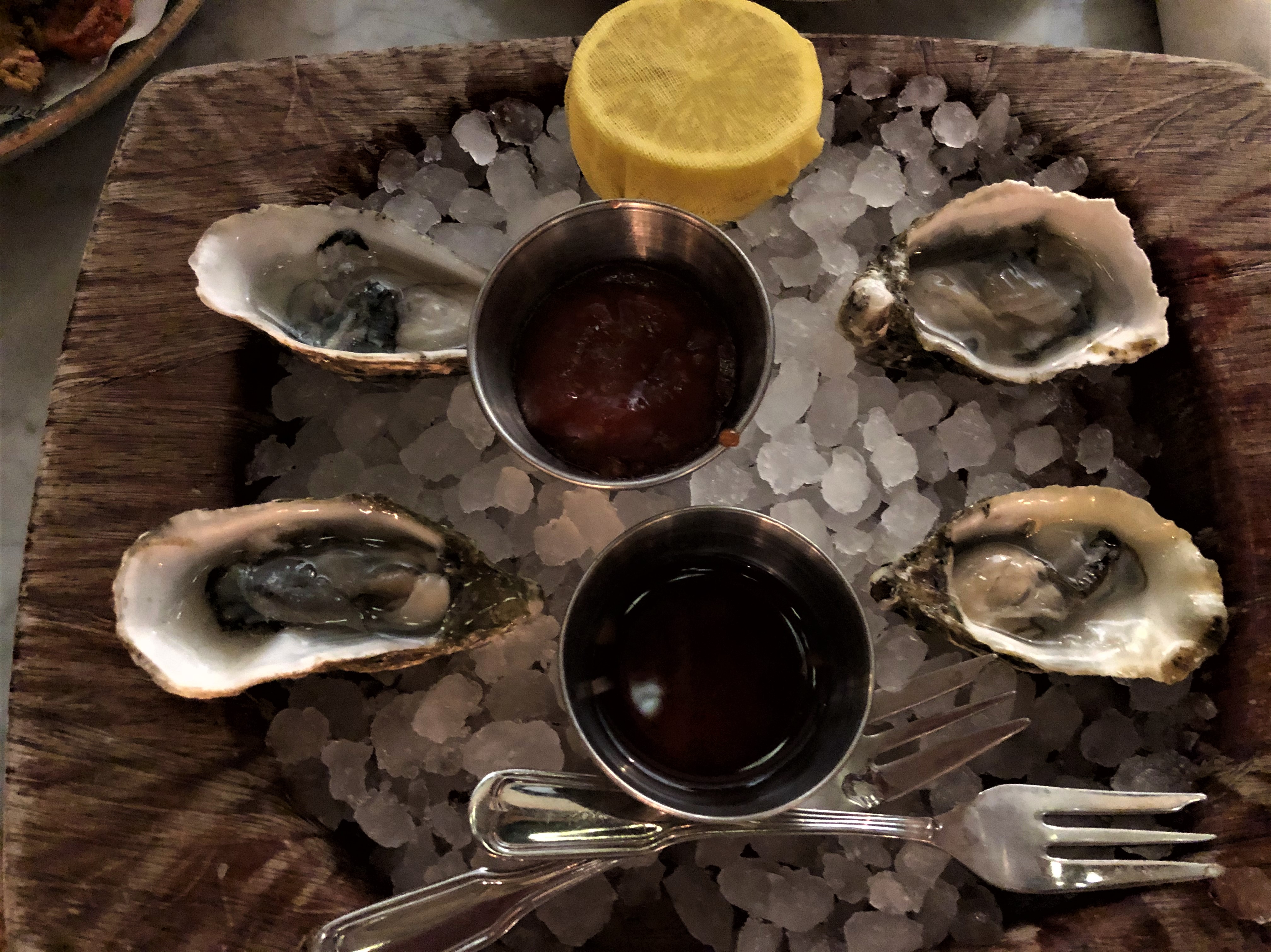 This is a seafood place, casual and intimate that’s great for any date night. Since it was happy hour my husband and I decided to go for the Fresh Oysters. They were served on a wooden plate with ice and cocktail sauce or vinegar for dipping. To be honest, I’m not quite a fan of raw oysters but these were quite fresh and not as fishy as I expected.
