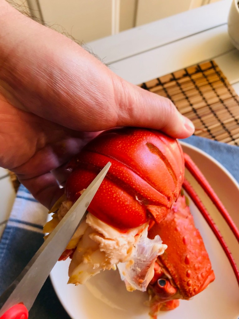 With the goods in tow we quickly headed back home for our deluxe lunch. Now I always feel guilty cooking fresh seafood as it means doing the ‘deed’ yourself at home so I learned a trick a long time ago to put the lobsters to ‘sleep’ in the freezer. Yes, give them a good scrub and then off into the freezer for 5-10 min until they go into hibernation mode to soften the blow in a more humane way. Mental images of my grandma hacking lobsters into tiny pieces for cooking while still alive have always haunted my animal lover side so this has been the best way to handle them so far in my books.
