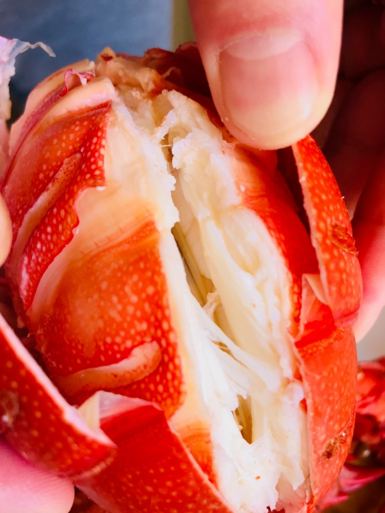 You will now they are ready when it becomes bright red. Once cooked the fun begins! I have to say that these are the MEATIEST LOBSTERS EVER! So you do get your bang for your buck. I mean apart from the tail which is HUGE, my husband and I found so much more meat in the legs, thick part of the antenna, and also surprisingly in the head as well right behind it’s mouth! The texture of the flesh is also great, a little bouncy with a good bite and as I said already many times it’s so sweet and naturally buttery. Never have I been so full just eating lobster which is a big plus haha 🙂