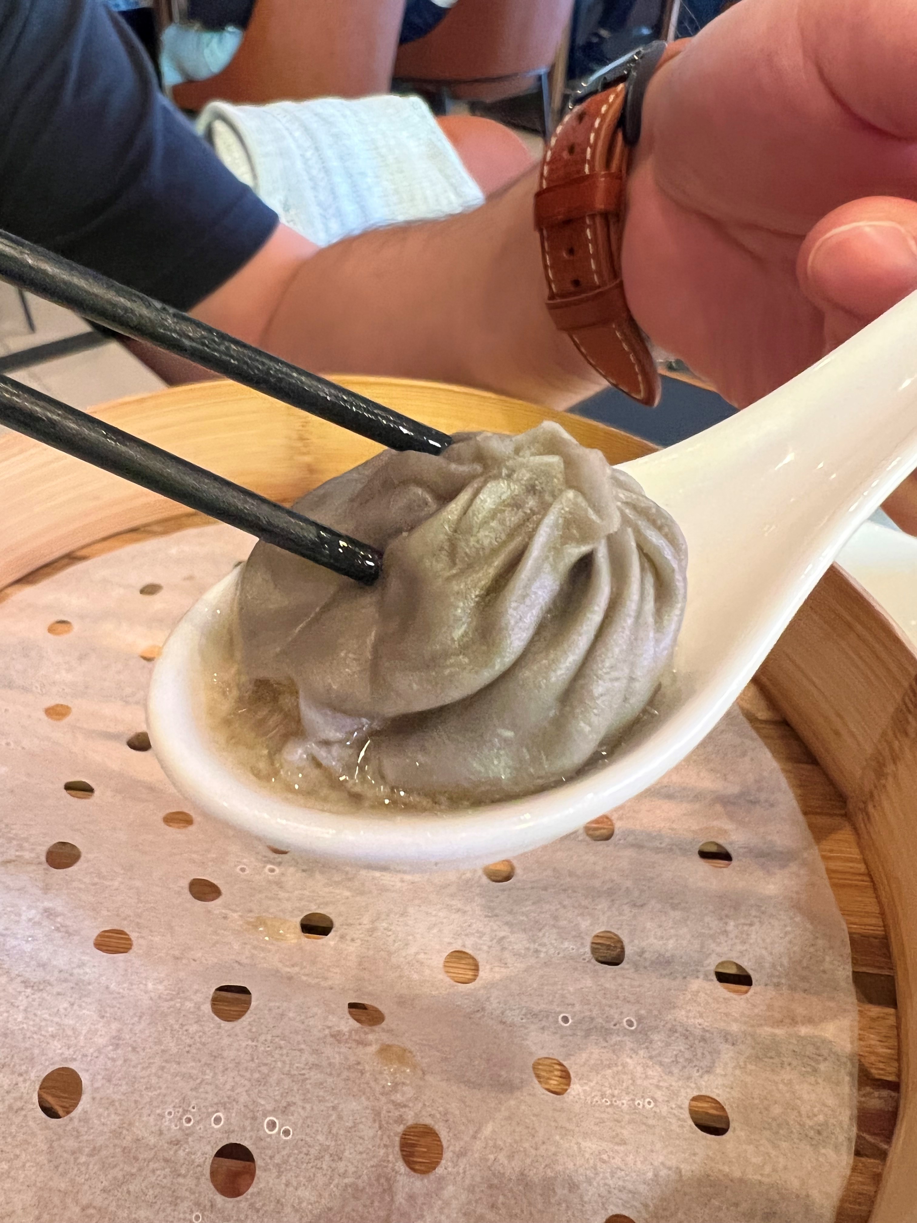 Now for the deluxe version! Who knew you can put fois gras in a soup dumpling because why not!? This one was by far a favorite, super unique, with a hint of delicious fatty duck liver in a good way. Very indulgent! I give this a 4.5/5.